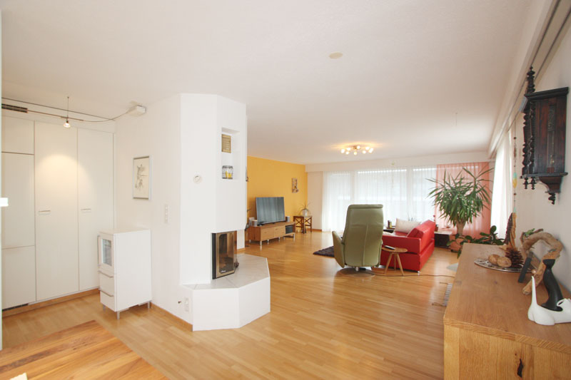 a) Separates WC mit Lavabo, b) Badezimmer mit flacher Duschwanne und Glasschiebewand, WC / Lavabo und Fenster, 4 Schlafzimmer, heller und grosszügiger Wohn-Essbereich mit Ausgang zum Balkon mit Sonnenstoren. Warmluft-Cheminée, moderne Küche mit Steinabdeckung und neuwertigen Geräten.