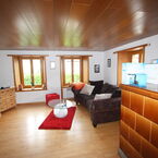 Einliegerwohnung 3 ½ -Zi. Eingangsbereich mit Garderobe. Bad-WC-Lavabo. Wohnzimmer mit Kachel-Holzofen.