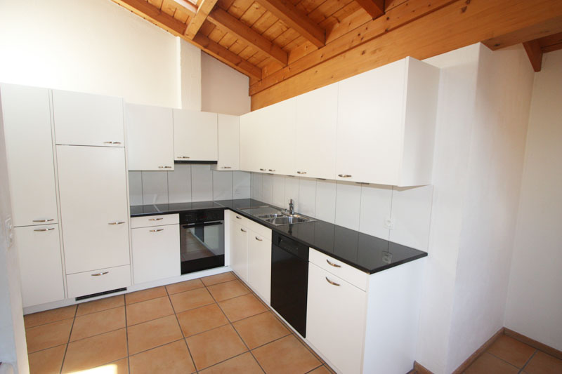 Eingangsbereich mit praktischem Einbauschrank, grosszügiger sowie heller Wohn-Ess-Kochbereich mit Warmluft-Cheminée und Ambiente mit Dachbalken sowie Ausgang zum sehr grosszügigen und überdachten Balkon, Nassraum mit Dusche/WC/Lavabo und Waschmaschine, helles und grosszügiges Schlafzimmer mit direktem Nassraum mit Wanne/WC/Lavabo. 2 weitere Schlafzimmer sowie ein grosser Abstellraum. Pflegleichte Bodenbeläge in Keramik und Parkett.
