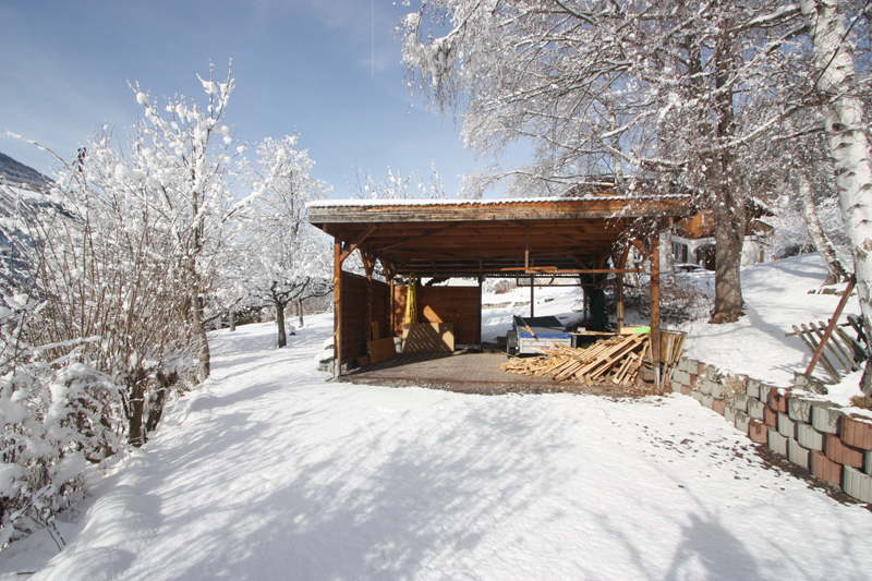 Aussen: Hühnerhaus, Gartenschopf, Doppelcarport, Einzelgarage mit Tor, Garten, Wiese, Obstbäume, Waldbäume, idyllische Auffahrt zum Haus, Heiligen Bildstock mit Madonna.